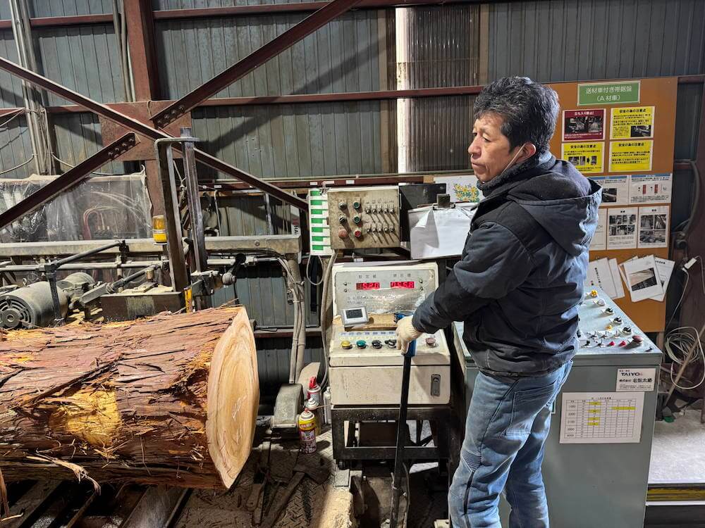 当時の社長(現在の会長)が本当に製材好きなので、横に付いて作業を見てくださいました。